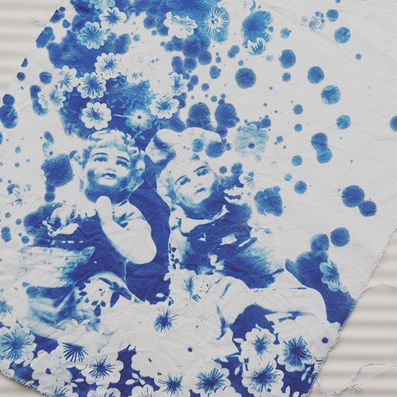 This was the beginning of a more experimental approach to creating imagery utilizing contact printing methods of the past, such as cyanotype and lumen prints. In addition, initial sampling with dye sublimation, generated simulated cyanotypes which could also be achieved with Photoshop.